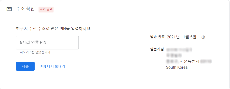 포스팅에 바빠서 정작 내 구글 핀번호 자동 발송에 미쳐 대처하지 못했다. 10$가 되면 주소 인증 및 본인 확인을 위해 애드센스 계정에 등록된 주소지로 자동으로 우편으로 발송이 된다. 하지만 나중에 고쳐야지 고쳐야지 하면서 미뤄왔던 게 생각이 났고, 들어갔지만 이미 발송되어있다. 어떻게 하면 이를 수정할 수 있는지 알아보겠습니다.